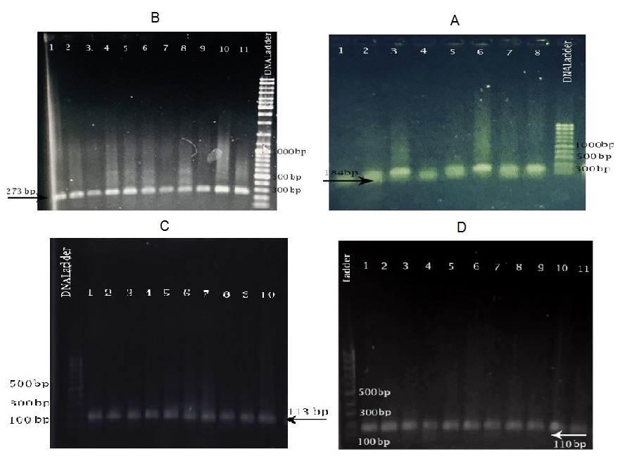In order to verify more precisely, based on the size of the target sequence, 2% )w/v( Agarose powder was dissolved in 1X TBE buffer. Later, the gel was kept in ethidium bromide solution for 15 minutes and was then transferred to distilled water for 5 minutes to remove the background stain.