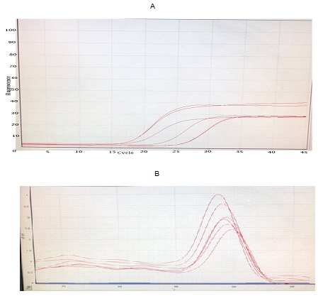 Results of the melting curve for each primer indicated that they acted as specific shapes, with no non-specific patches and secondary structures (Fig. 5B).