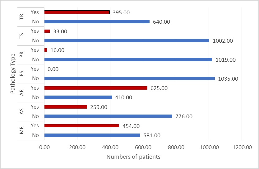 Abbreviation: AS= Aortic Stenosis, AR= Aortic Regurgitation, MR= Mitral Regurgitation, PR= Pulmonary Regurgitation, TR= Tricuspid Regurgitation, TS= Tricuspid Stenosis